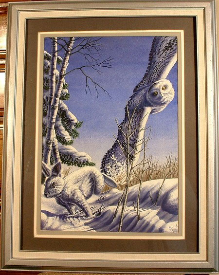 The chase is on, as a snowy owl and a snowshoe hare are locked in a contest for survival in the deep boreal forest of northeastern Minnesota. Not a year around resident, the owl is a winter visitor from the Arctic, making it's presence known whenever the lemming population in that region takes a tumble.