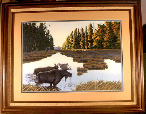 On one of those unforgettable, early October mornings, the sun was beginning to peek around the distant black spruce as a bull moose and his cow lounged in a watery bog, south of Isabella Lake. All was not to remain tranquil, however, as an even larger bull moose appeared in the shadows, moving out of the cover of the thick spruce.